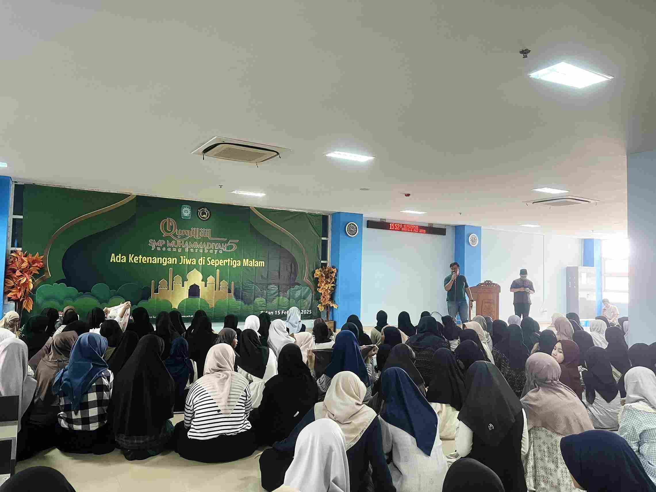 Surabaya, liputanmu – Tingkatkan Kualitas Ibadah Siswa, SMP Muhammadiyah 5 (Spemma) Surabaya gelar Qumillail di Masjid Sholahuddin. Dengan mengambil tema; “Ada Ketenangan Jiwa di Sepertiga Malam”, yang diikuti oleh 693 siswa dari Kelas 7 hingga 9.