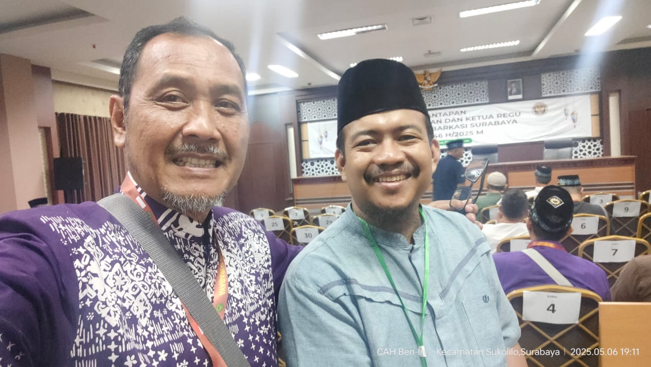 “Alhamdulillah, bisa bertemu beliau, di Hall Shofa dalam pembinaan Ketua Regu dan Ketua Rombongan Kloter 16, 17, 18, dan 19. KBIHU PDM Surabaya tergabung dalam Kloter 17, yang berjumlah 125 jamaah.” Ujarnya.