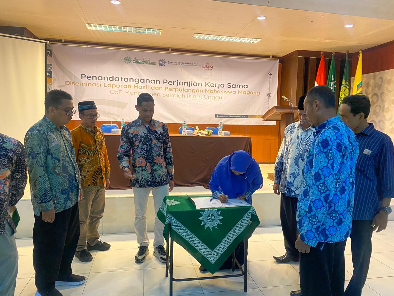 Bojonegoro, liputanmu – Majelis Dikdasmen dan PNF PDM Kabupaten Bojonegoro memfasilitasi kerja sama antara MTs Muhammadiyah 1 Banjaranyar, Baureno, Bojonegoro dengan Center of Excellence (CoE) Manajemen Sekolah Islam Unggul Fakultas Agama Islam (FAI) Universitas Muhammadiyah Malang (UMM). Penandatanganan Memorandum of Understanding (MOU) dilaksanakan pada Rabu, 11 Desember 2025 di Aula PDM Bojonegoro.