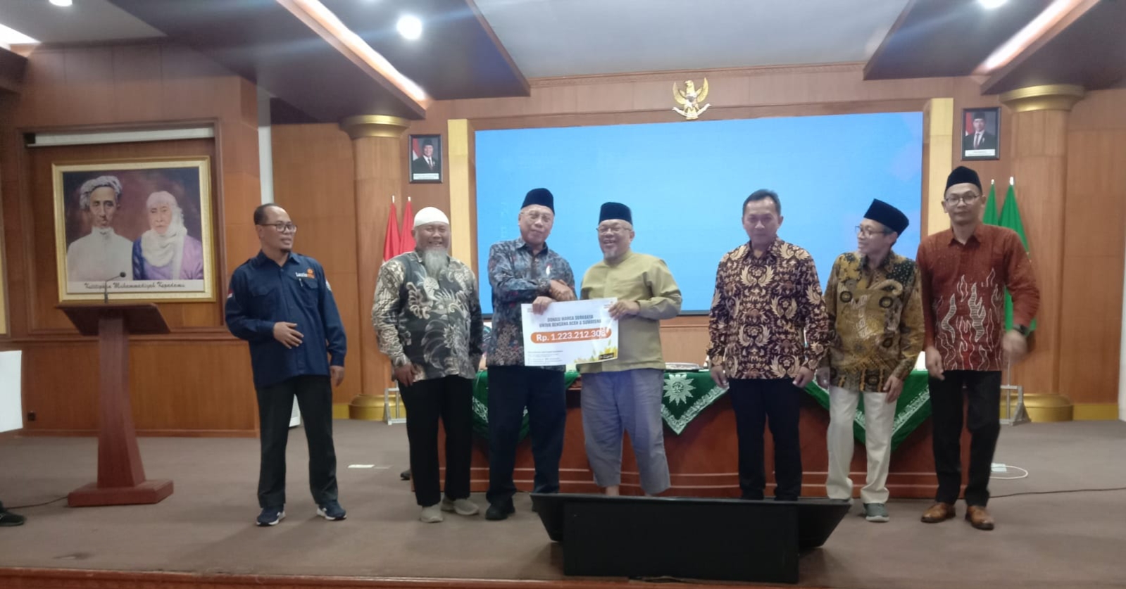 Dalam kesempatan tersebut, Ustadz Drs. Marjuki, MA., Wakil Ketua PDM Kota Surabaya yang membidangi LAZISMU, menyampaikan bahwa terhitung sejak tanggal 1 Desember 2025 hingga 1 Januari 2026 LAZISMU PDM Kota Surabaya telah menghimpun donasi melalui Amal Usaha Muhammadiyah (AUM) yang berada di Pimpinan Cabang Muhammadiyah (PCM) se-Surabaya sebesar Rp 1, 2 Miliar.