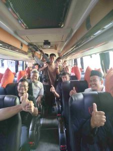 “Sebelum berangkat, di lingkungan Sekolah mereka dengan penuh ceria, canda tawa, dan itu berlanjut sampai di dalam bus. Di bus pun begitu, bergantian menyanyi dengan kesukaan lagunya masing-masing. Nyanyi bersama meskipun tidak bisa, atau bahkan suaranya ada yang sangat cempreng, tapi tetap nyanyi bersama.” Ujarnya Ustadz Salman menggambarkan suasana kebersamaan itu.