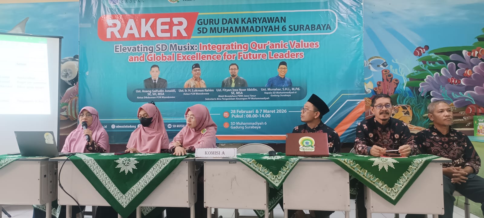 Surabaya, liputanmu – Rapat Kerja (Raker) guru dan karyawan Sekolah Qur’anic and Internasional Insight SD Muhammadiyah 6 Gadung (SD Musix) Surabaya memasuki tahap sidang pleno pada Sabtu (07/03/2026).